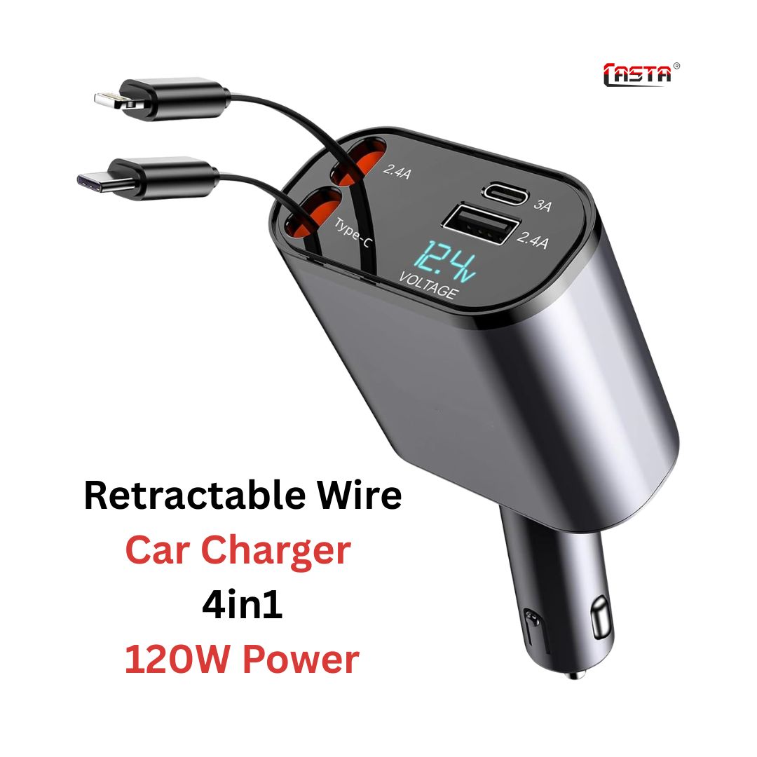 Retractable Wire Car Charger 4in1 – 120W Power